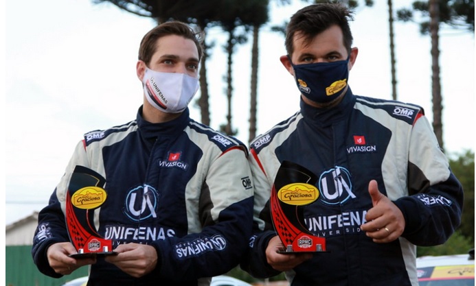 A dupla, formada pelos pilotos Victor Corrêa e Maicon Souza, comemora o bicampeonato da temporada do Brasileiro de Rally de Velocidade. O título foi confirmado oficialmente com a decisão dos organizadores, na sexta-feira, de cancelar a última etapa da competição, que seria realizada nos dias 12 e 13 de dezembro em Erechim (RS).
