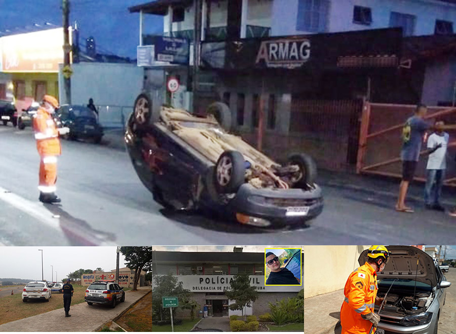 Carro capota no centro de Alfenas
