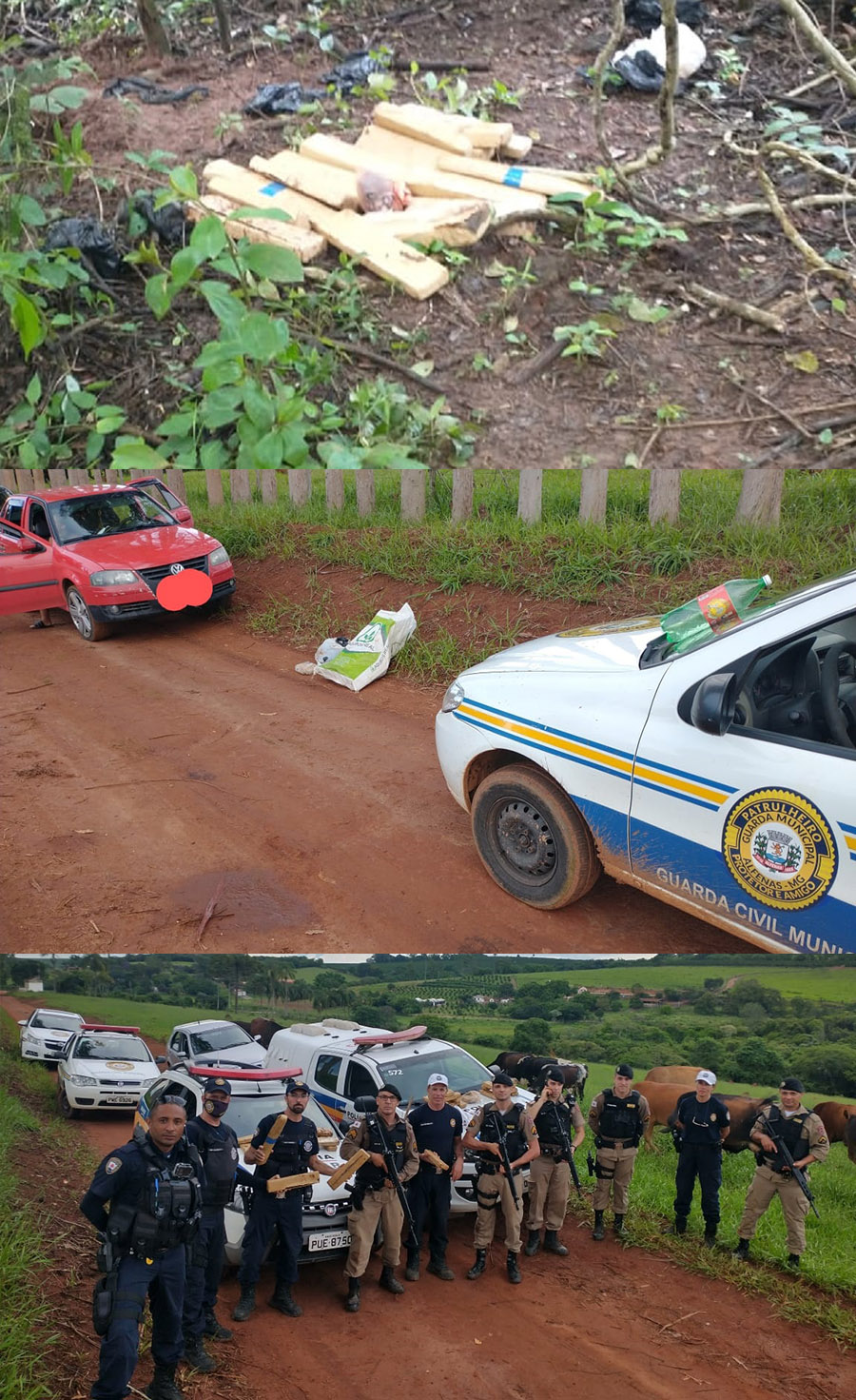 A mulher ficou do lado de fora do veículo e deixou o filho, de 3 anos, dentro do carro. Enquanto isso, um homem atravessou a cerca e entrou no matagal. Ao ver um policial, o homem, que estava com uma barra de maconha na mão, saiu correndo e fugiu ao entrar em uma plantação de milho.