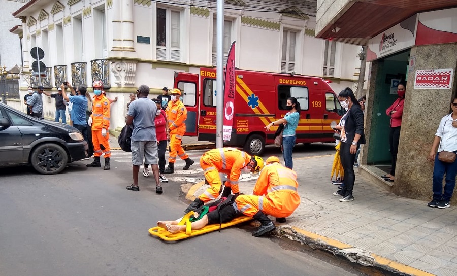 O acidente aconteceu por volta das 12h30 de sábado (27) no cruzamento da rua Coronel Laurindo Ribeiro com a rua Juscelino Barbosa, no centro de Alfenas. A vítima, um jovem de 27 anos que conduzia uma motocicleta, foi arremessada ao chão após a colisão com um carro.