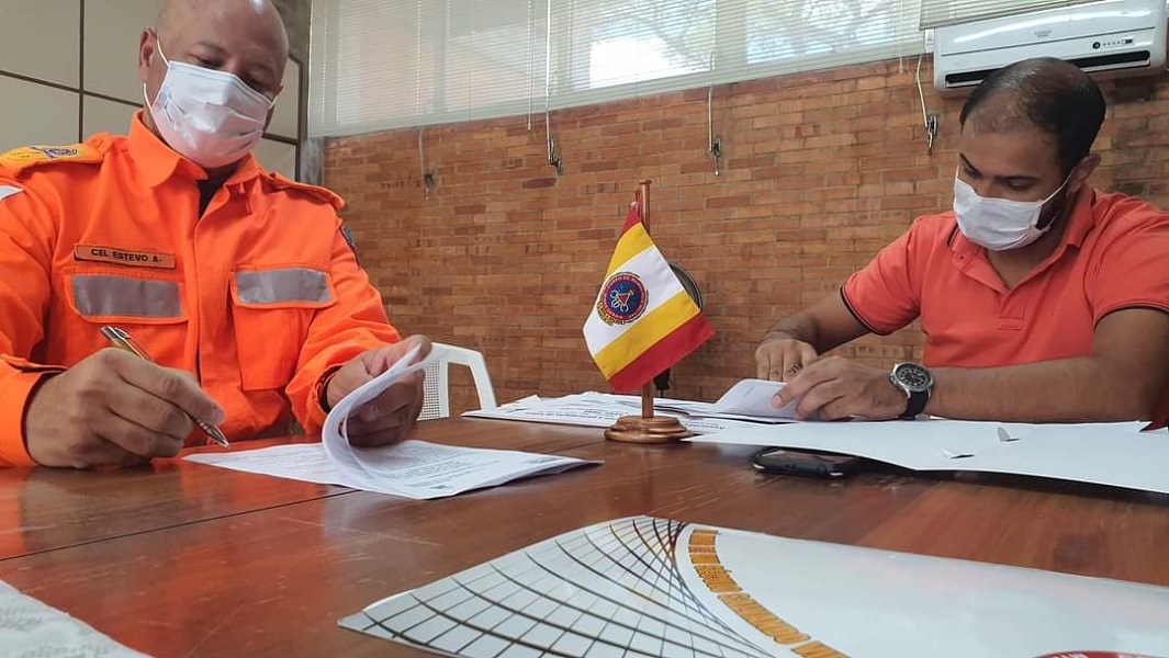 O comandante geral do Corpo de Bombeiros e o prefeito de Machado (Foto: Corpo de Bombeiros)