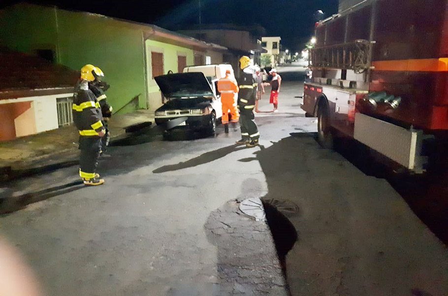 Um veículo, com registro de furto, pegou fogo na noite de sexta-feira no bairro Jardim São Carlos, em Alfenas.