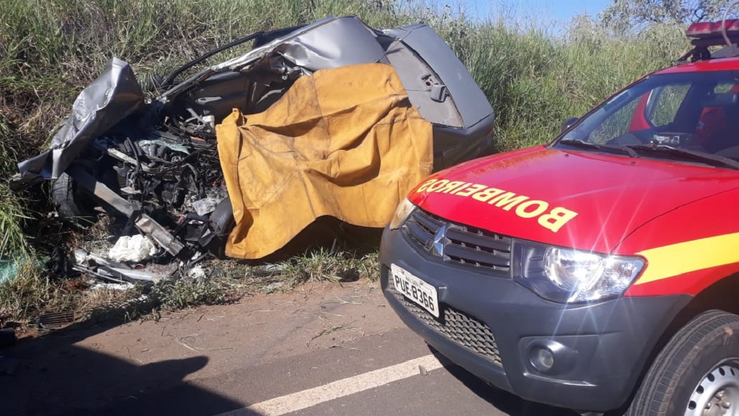 De acordo com o Corpo de Bombeiros, o motorista, de 48 anos, e a passageira, de 43 anos, ficaram presos às ferragens do carro. O motorista morreu no local do acidente.