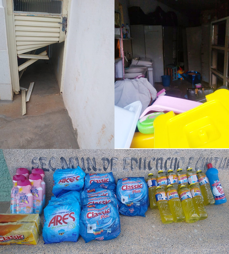 Uma das portas na creche ficou danificada. Foi por esse local que o homem entrou para pegar a chave da lavanderia e praticar o furto, de acordo com a ocorrência. O local ficou revirado.