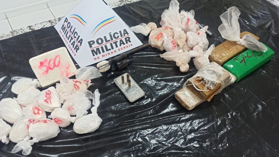 Na terceira apreensão, o Tático Móvel localizou mais droga além de arma de fogo (Foto: PM/Divulgação)