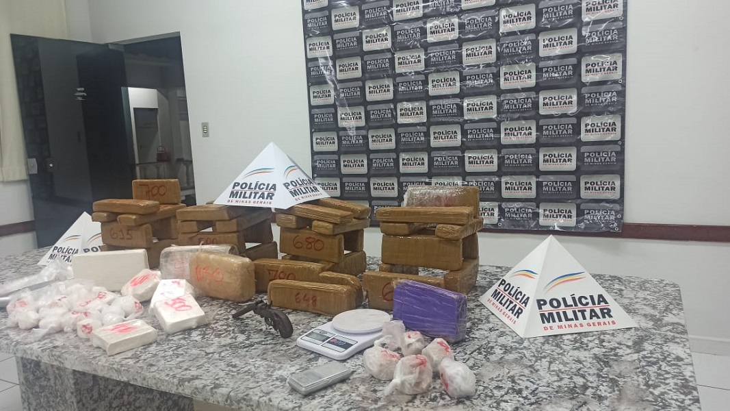 A Polícia Militar apreendeu, nesta segunda-feira, uma grande quantidade de drogas em três ocorrências, uma delas na zona rural e outras duas no bairro Santa Clara. Foram 28,5 kg de maconha apreendidos e outros 38 tabletes da droga, além de 10 kg de cocaína e mais de 3 kg de crack.