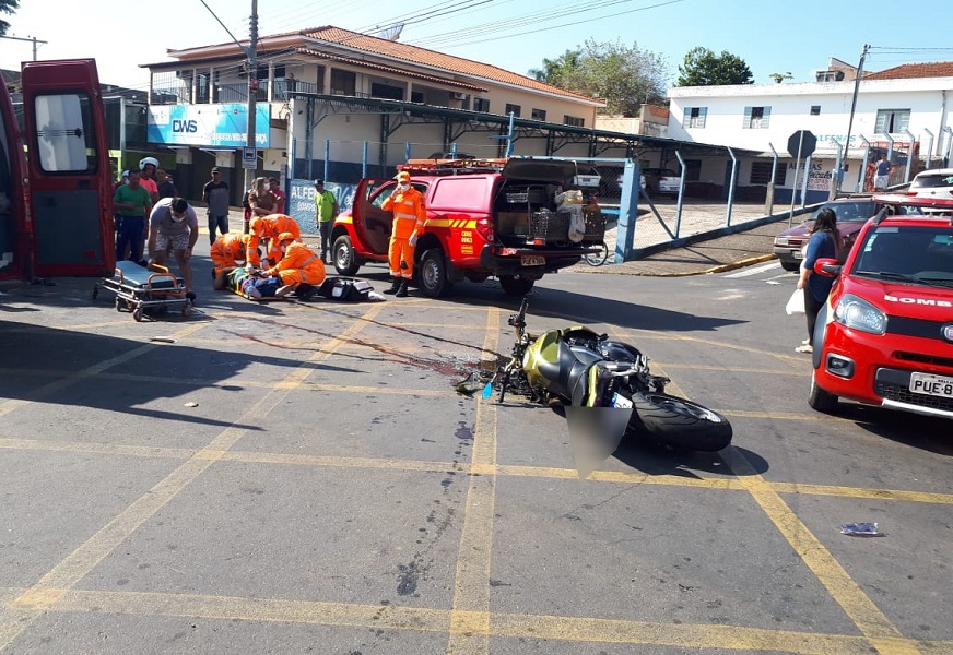 Um motociclista, de 26 anos, ficou ferido após um acidente na avenida Governador Valadares, em Alfenas, no início da tarde deste sábado. A moto, conduzida por ele, chocou-se com um carro que avançou a parada obrigatória na esquina com a rua Joaquim Manoel de Macedo, próximo ao Restaurante Brasão.
