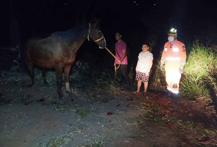 O Corpo de Bombeiros de Alfenas realizou, na noite de segunda-feira (09), o resgate de um cavalo que estava preso em um buraco de aproximadamente 2 metros de profundidade.