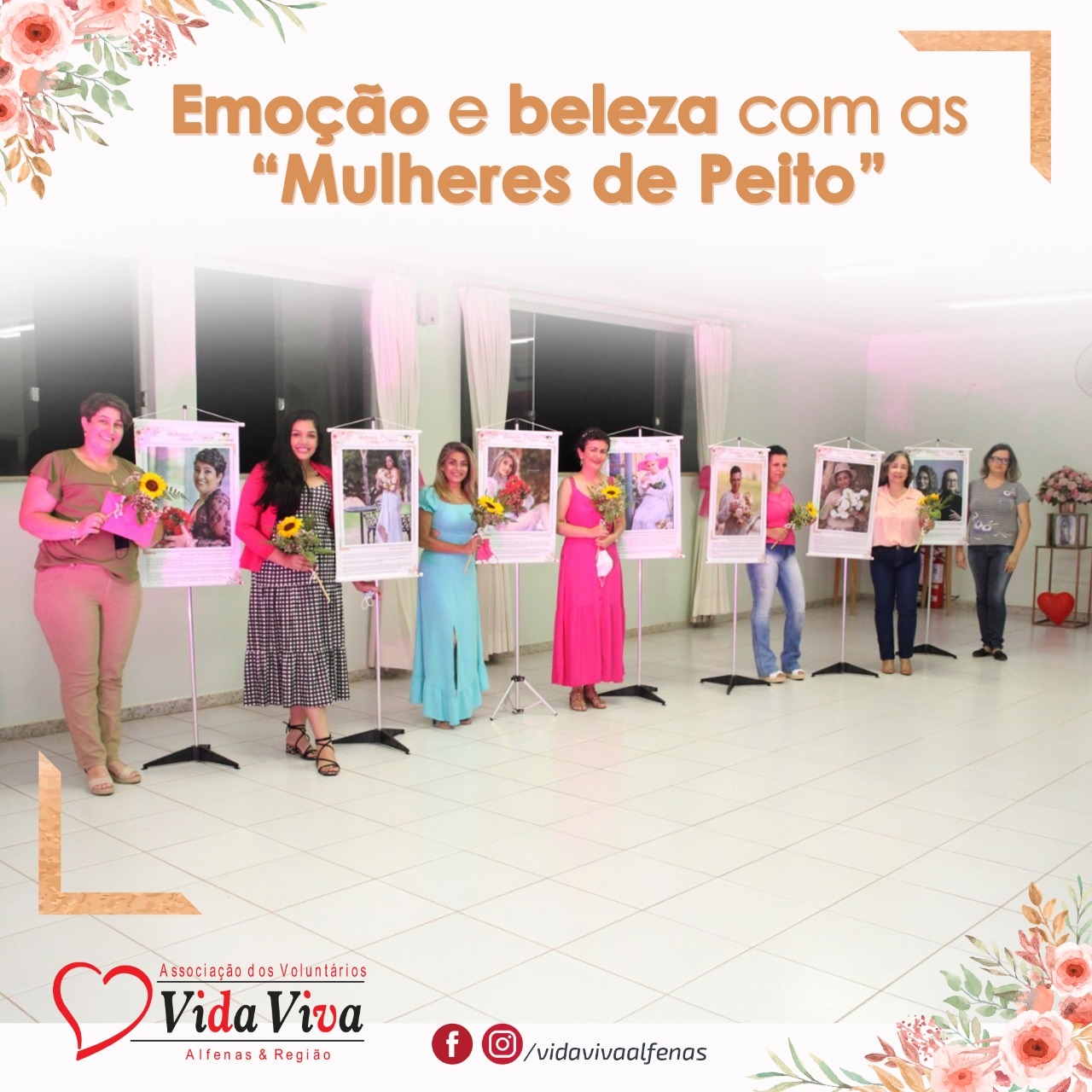 O auditório da Associação Vida Viva Alfenas foi palco, na quinta-feira, dia 7, de um evento especialmente significativo em sua programação no contexto do Outubro Rosa. A entidade recebeu as integrantes do grupo Mulheres de Peito para a reunião de entrega simbólica dos banners da exposição de fotografias e “micro biografias” que elas sonhavam realizar.