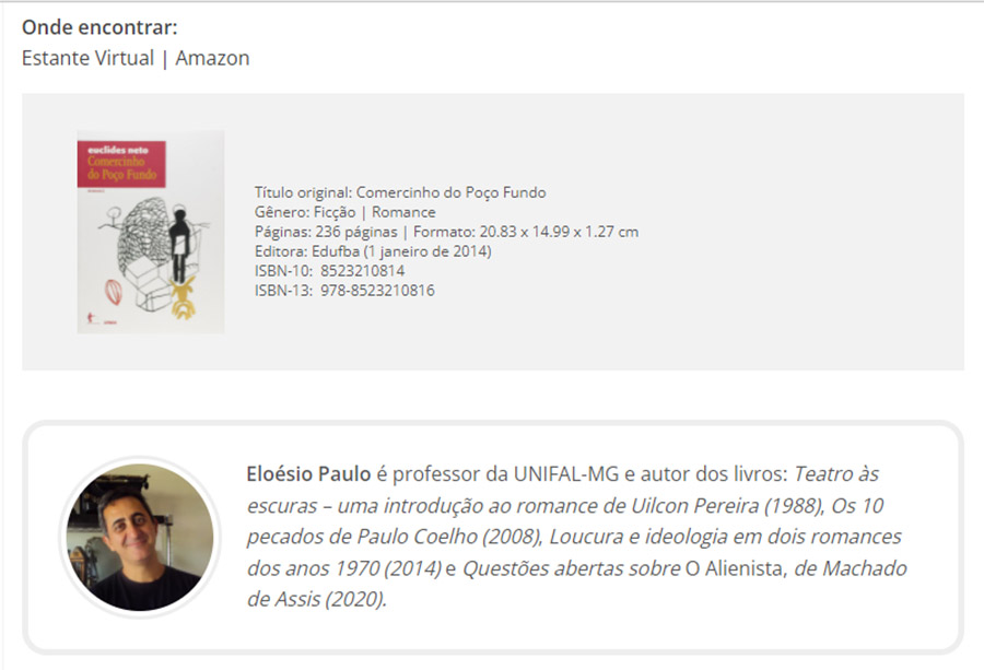 Confira o texto de Eloésio Paulo sobre o livro de Euclides Neto “Comercinho do Poço Fundo”.