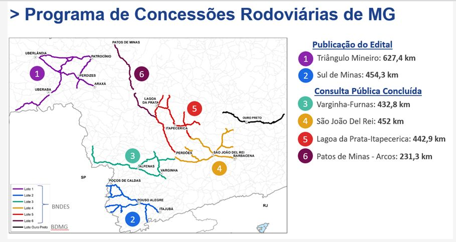 Em dezembro, a Secretaria de Estado de Infraestrutura e Mobilidade (Seinfra) realizou uma consulta pública para o processo de concessão de lote Varginha-Furnas. O projeto foi estruturado com o apoio do Banco Nacional de Desenvolvimento Econômico e Social (BNDES).
