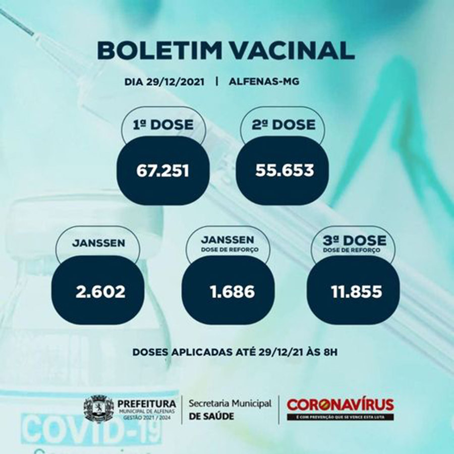 De acordo com o boletim vacinal da Secretaria Municipal de Saúde, 55.653 pessoas já foram vacinadas com as duas doses. Desse total, 11.855 já foram imunizadas com a terceira dose. Com a primeira dose são 67.251 moradores.