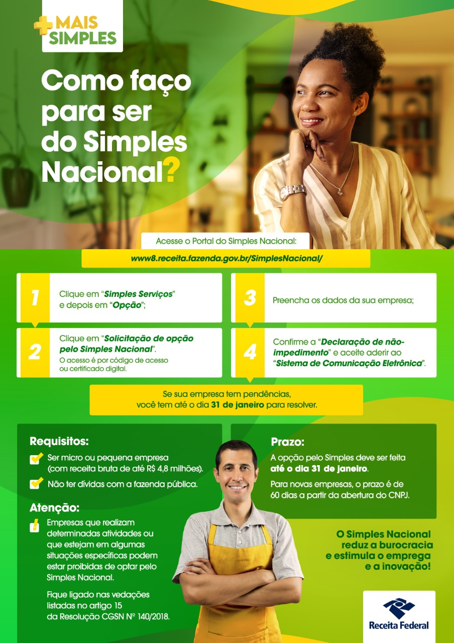 Prazo de opção pelo regime de tributação do Simples Nacional será até o dia 31 de janeiro, resultado final será divulgado em 15 de fevereiro.
