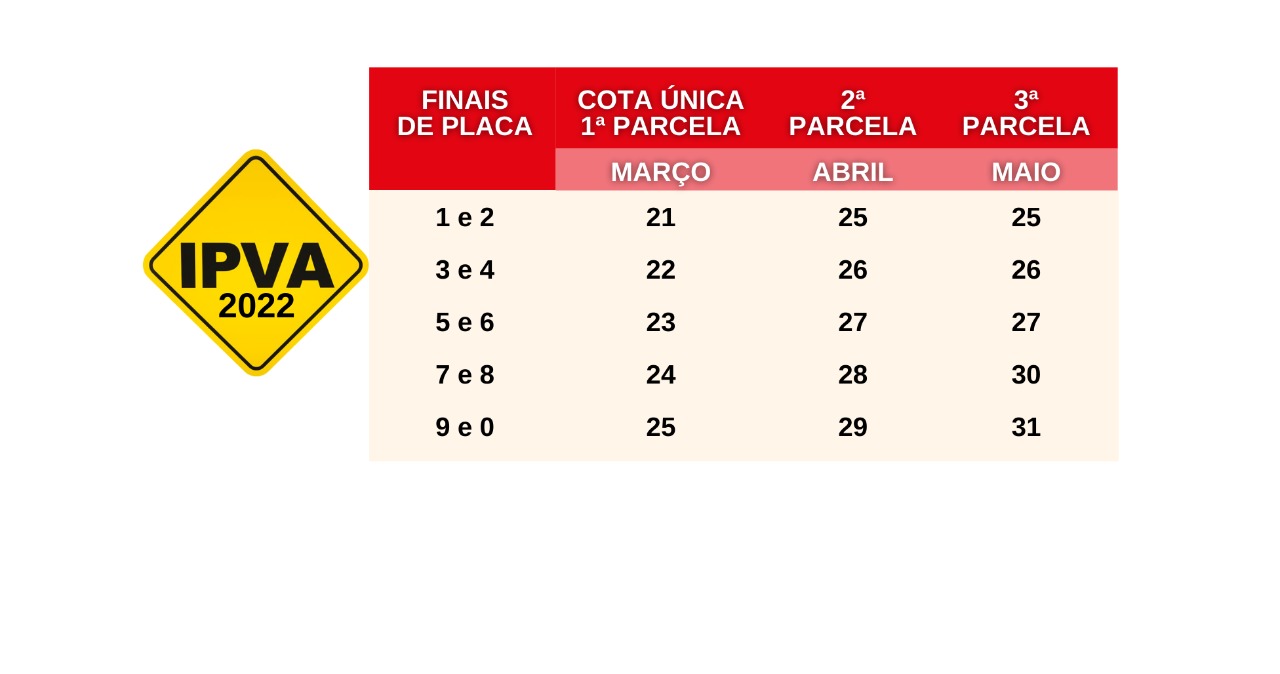 Com a divulgação das datas, os motoristas poderão se programar para o pagamento do imposto. Lembrando que está mantido o desconto de 3% para a quitação em cota única e o bônus de 3% do programa "Bom Pagador", ao qual faz jus quem quitou em dia os débitos tributários relacionados ao veículo nos anos de 2021 e 2020. Vale destacar que o desconto para o "Bom Pagador" é atrelado ao Renavam do veículo e não ao CPF do proprietário.