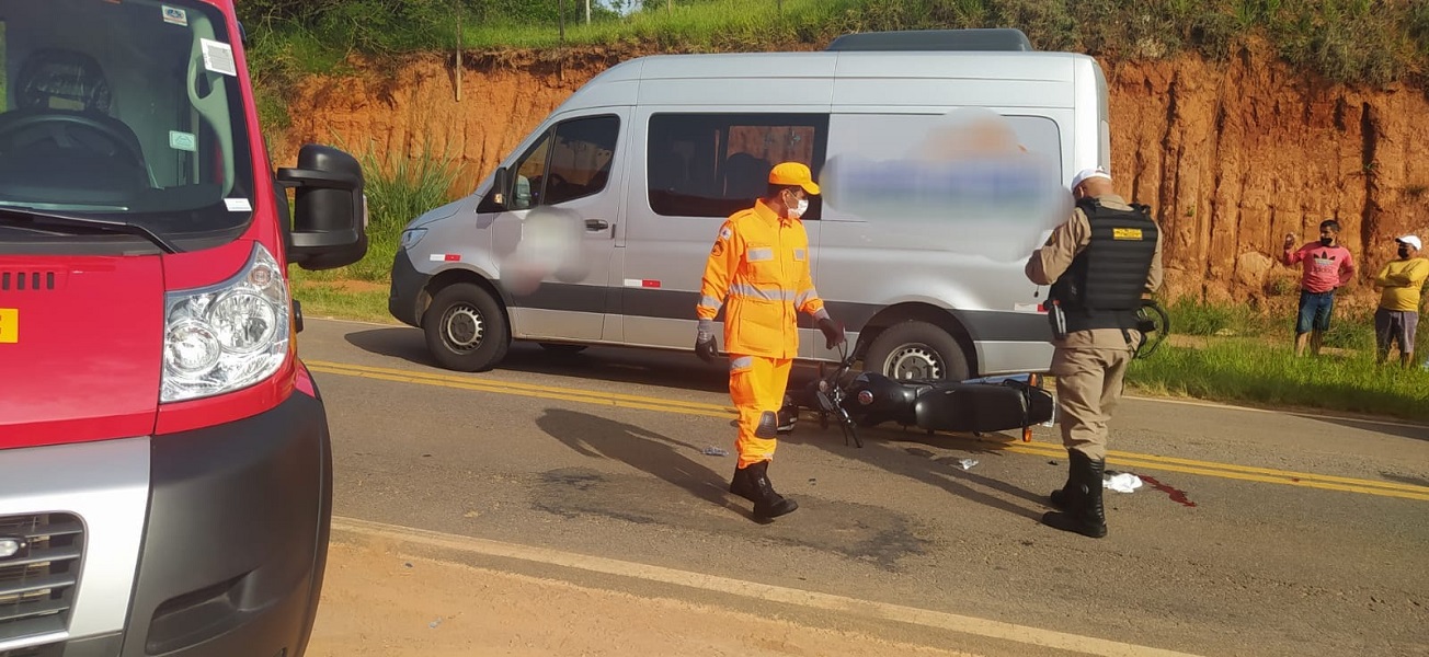 O acidente foi entre uma motocicleta, que bateu na traseira de uma van, segundo os bombeiros. A moto era conduzida por um homem de 38 anos e, na garupa, estava o filho dele.