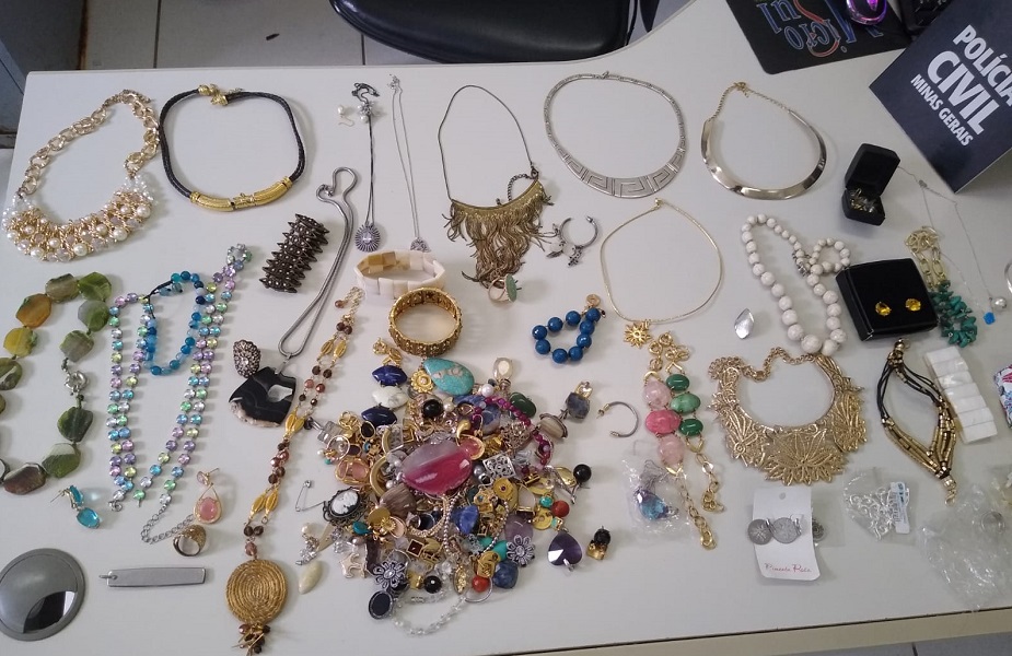 Diversas bijuterias foram recuperadas após o cumprimento do mandado de busca e apreensão.