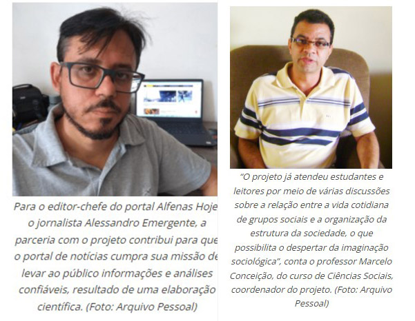 Para o editor-chefe do portal Alfenas Hoje, o jornalista Alessandro Emergente, o projeto oportuniza aos leitores analisarem e compreenderem a realidade social a partir de um olhar científico. “Entendo que o projeto — e o próprio Alfenas Hoje por consequência da parceria — cumpre a missão de contribuir para formação de um olhar mais sociológico em relação a temas complexos, que muitas vezes são abordados pela mídia de forma superficial”, avalia.
