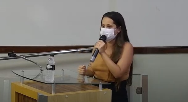 A secretária executiva de Desenvolvimento Social, Marina Gissi de Oliveira, usou a tribuna para falar sobre o Dia Internacional da Mulher (Foto: Reprodução/Youtube)
