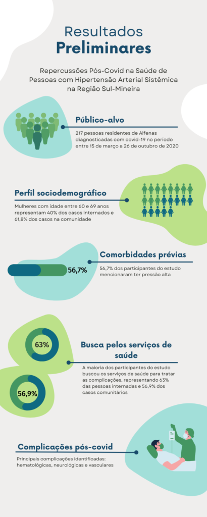 De acordo com a professora Silvana Maria Coelho Leite Fava, vice-coordenadora do programa de Pós-Graduação em Enfermagem e uma das pesquisadoras envolvidas no projeto “Repercussões Pós-Covid na Saúde de Pessoas com Hipertensão Arterial Sistêmica na Região Sul-Mineira”, a ideia surgiu a partir da própria vivência junto ao projeto “DIPER: em busca de uma melhor qualidade de vida”.