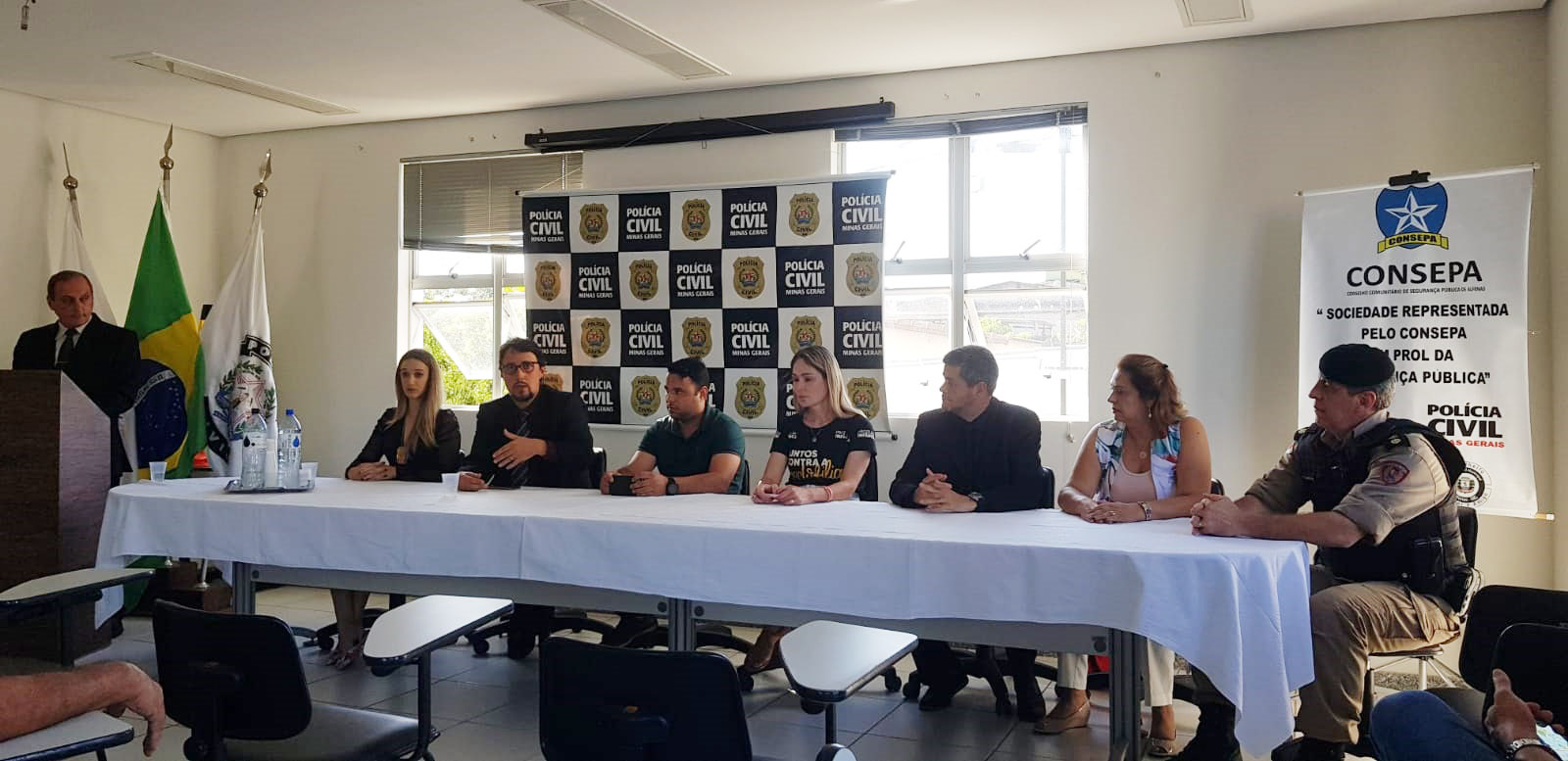 Participaram da solenidade, o chefe do 18° Departamento, Edson Rogério de Morais, o delegado regional, Márcio Bijalon, a delegada da Delegacia Especializada em Atendimento à Mulher (Deam), Rafaela Franco, o comandante do 64° Batalhão da PM, tenente coronel André Luiz da Silva, e a presidente do Consepa (Conselho de Segurança Pública de Alfenas), Carmem Romana, além do prefeito de Alfenas, Fábio Marques Florêncio (PT), e da deputada estadual delegada Sheila Oliveira, autora da emenda parlamentar que destinou os recursos para a sala de depoimentos, segundo a Polícia Civil. Abaixo, foto divulgada pela Polícia Civil.