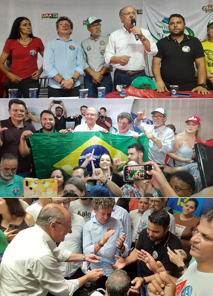 Na visita a Alfenas, Alckimin estava acompanhado pelo deputado estadual eleitor Luiz Antônio da Silva (Luizinho) e o prefeito de Alfenas, Fábio Marques Florêncio (PT), além de várias lideranças como o senador Alexandre Silveira (PSD) e os petistas Reginaldo Lopes e Odair Cunha. O ex-governador de São Paulo, Márcio França (PSB), também acompanhou Alckimin em vinda a Alfenas, o que incluiu uma caminhada no centro e a visita ao Mercado Municipal.