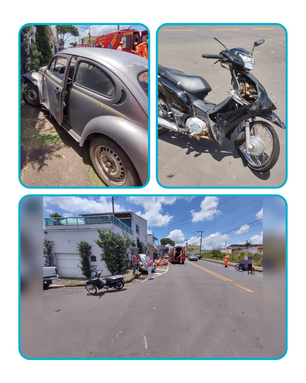 Um carro, VW Fusca, bateu na parede de uma residência, no bairro Jardim São Carlos, após uma colisão com uma motociclista. O motociclista teve ferimentos nos braços e nas pernas e foi encaminhado para o Hospital Alzira Velano, em Alfenas.