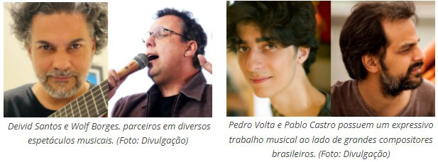 Na apresentação, a dupla Pablo e Pedro toca músicas do álbum “Clube da Esquina”, que completa 50 anos, além de outras músicas desse movimento de destaque no Brasil. O músico Pablo Castro é estudioso da MPB, dos Beatles, crítico e diretor musical, e Pedro Volta é cantor, compositor, pianista e violinista, além de desenvolver trabalhos na área musical ao lado de grandes compositores brasileiros.