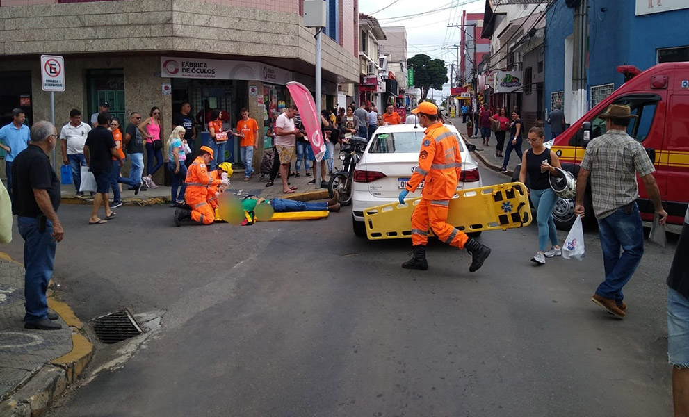 Um acidente envolvendo um carro e uma moto foi registrado, na manhã desta quinta-feira, no centro de Alfenas. O motociclista foi socorrido pelo Corpo de Bombeiros.