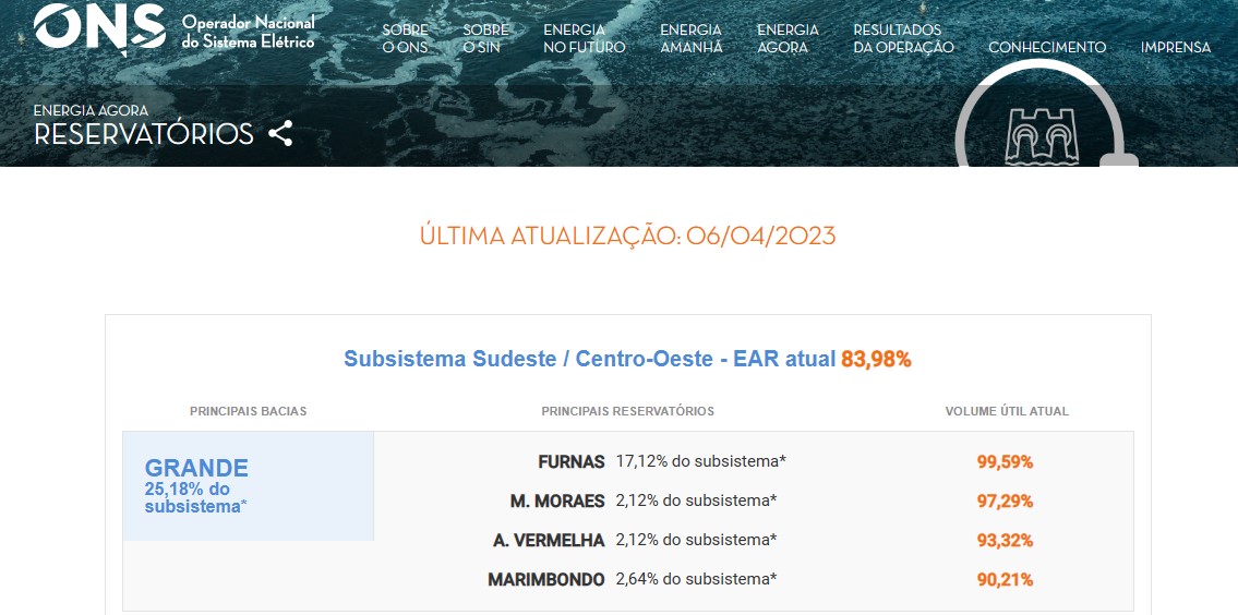 A marca alcançada na quinta-feira não era atingida desde março de 2011, segundo o ONS. Com potência instalada de 1.216 MW, a hidrelétrica de Furnas representa 17,12% da capacidade de armazenamento de energia no subsistema Sudeste/Centro-Oeste e, por isso, tem importância estratégica para o sistema elétrico nacional. Outro aspecto importante é que o reservatório de Furnas permite a regularização do Rio Grande e contribui com a produção de energia em outras usinas.