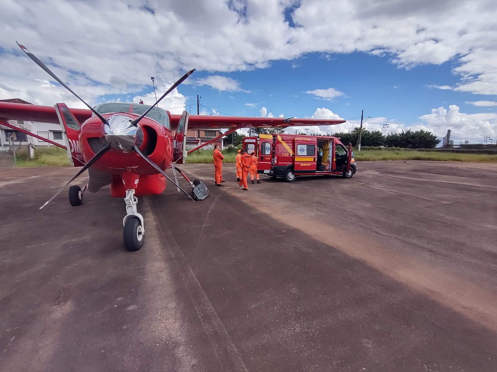 Um paciente, de 27 anos, com queimaduras em estado grave foi transferido, nesta sexta-feira, de Alfenas para São Paulo. A transferência foi realizada pela aeronave do Corpo de Bombeiros.