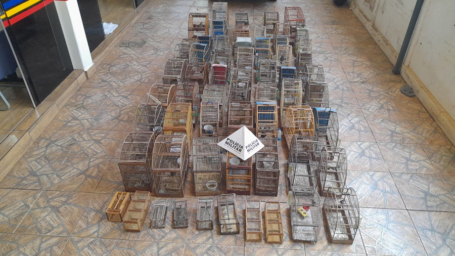 A Polícia Militar do Meio Ambiente apreendeu essa semana 56 pássaros, além de gaiolas e outros objetos que evidenciam crime ambiental. A apreensão foi em uma residência no bairro Pinheirinho, em Alfenas, após denúncias contra um morador. A denúncia apontava que o homem estava realizando a caça e comercializando aves da fauna silvestre brasileira.
