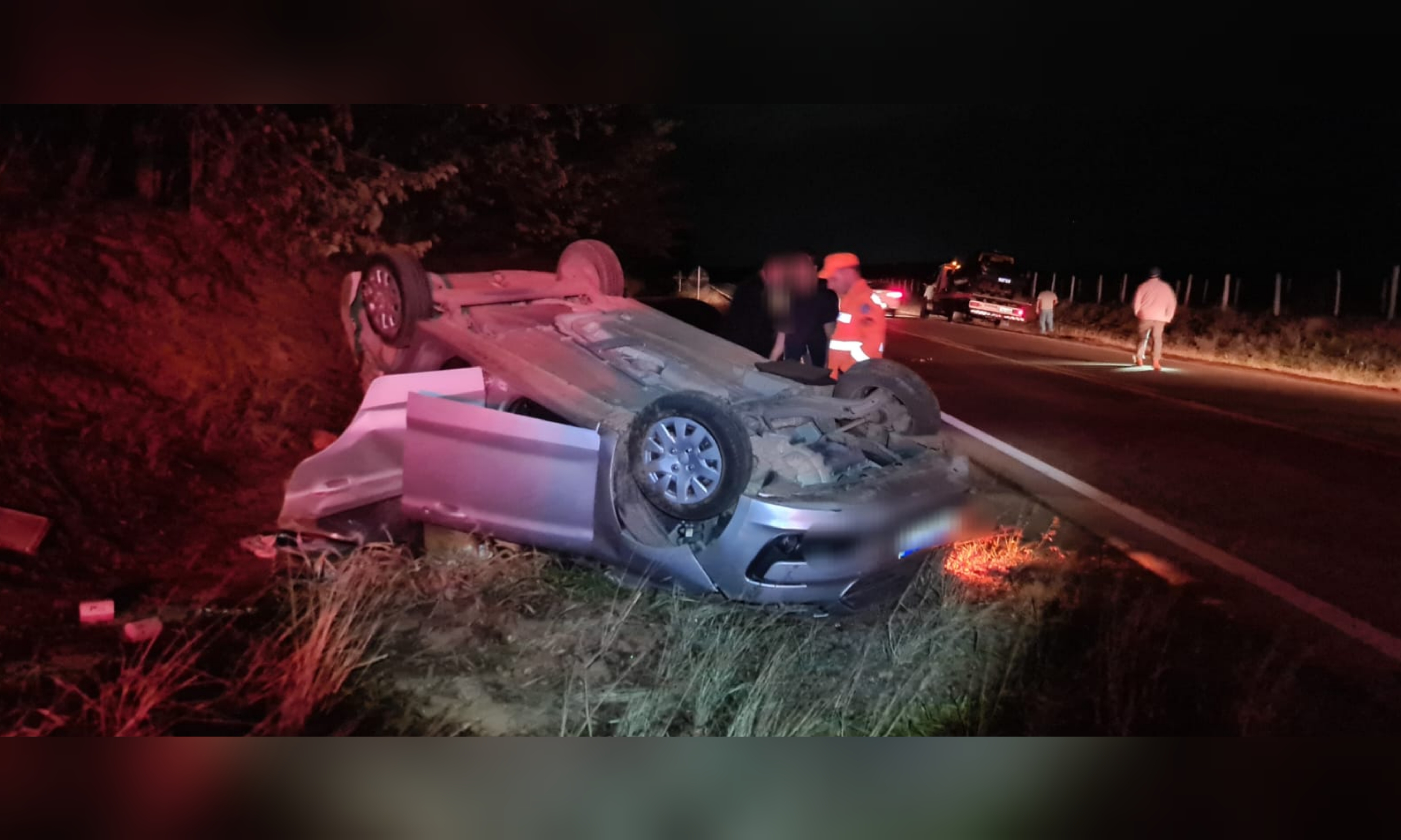 Um veículo capotou, no início da noite desta quarta-feira, na BR 369, próximo a Ponte das Amoras. O acidente foi após o motorista perder o controle da direção do carro.