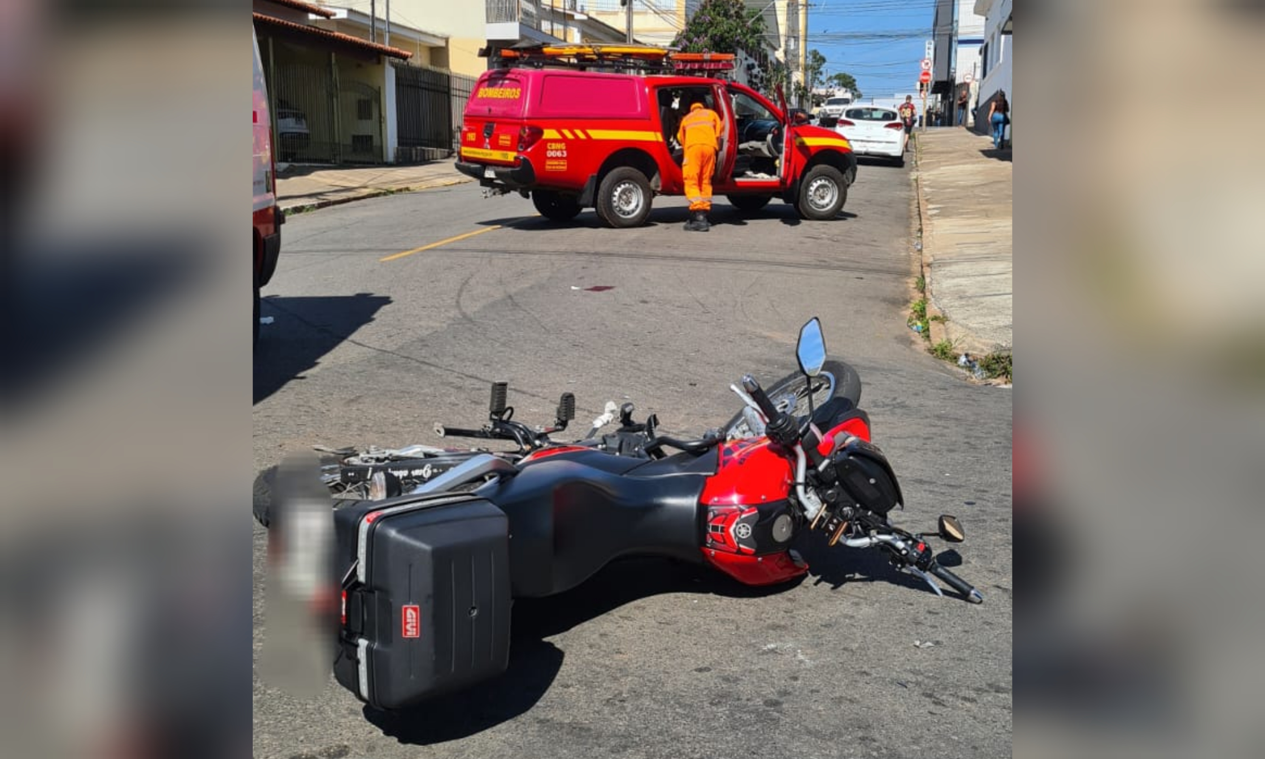 O acidente foi no cruzamento da rua Leão de Faria com a rua Afonso Arinos, no centro de Alfenas. Abaixo foto divulgada pelo Corpo de Bombeiros.