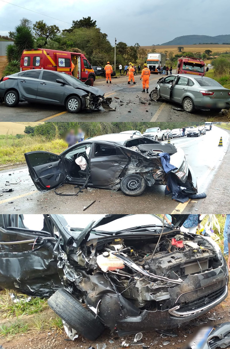 Um acidente envolvendo três veículos, na tarde de domingo, deixou quatro pessoas feridas. O acidente foi na rodovia BR 267, que liga Machado a Campestre.