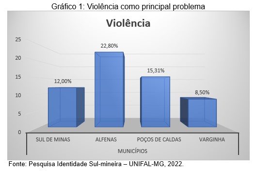 Portanto, em Alfenas a violência tem sido mais sentida que em outros munícipios do Sul de Minas. O desemprego também é fruto de preocupação maior do que em Poços de Caldas e no Sul de Minas, porém, um pouco abaixo do índice de Varginha, onde se constituiu como maior problema.