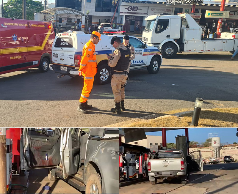Ao chegarem ao posto de combustível, os PMs encontraram um dos suspeitos baleado, dentro do carro. A informação inicial é que a arma de fogo, usada pelo suspeito, teria disparado, atingindo-o.