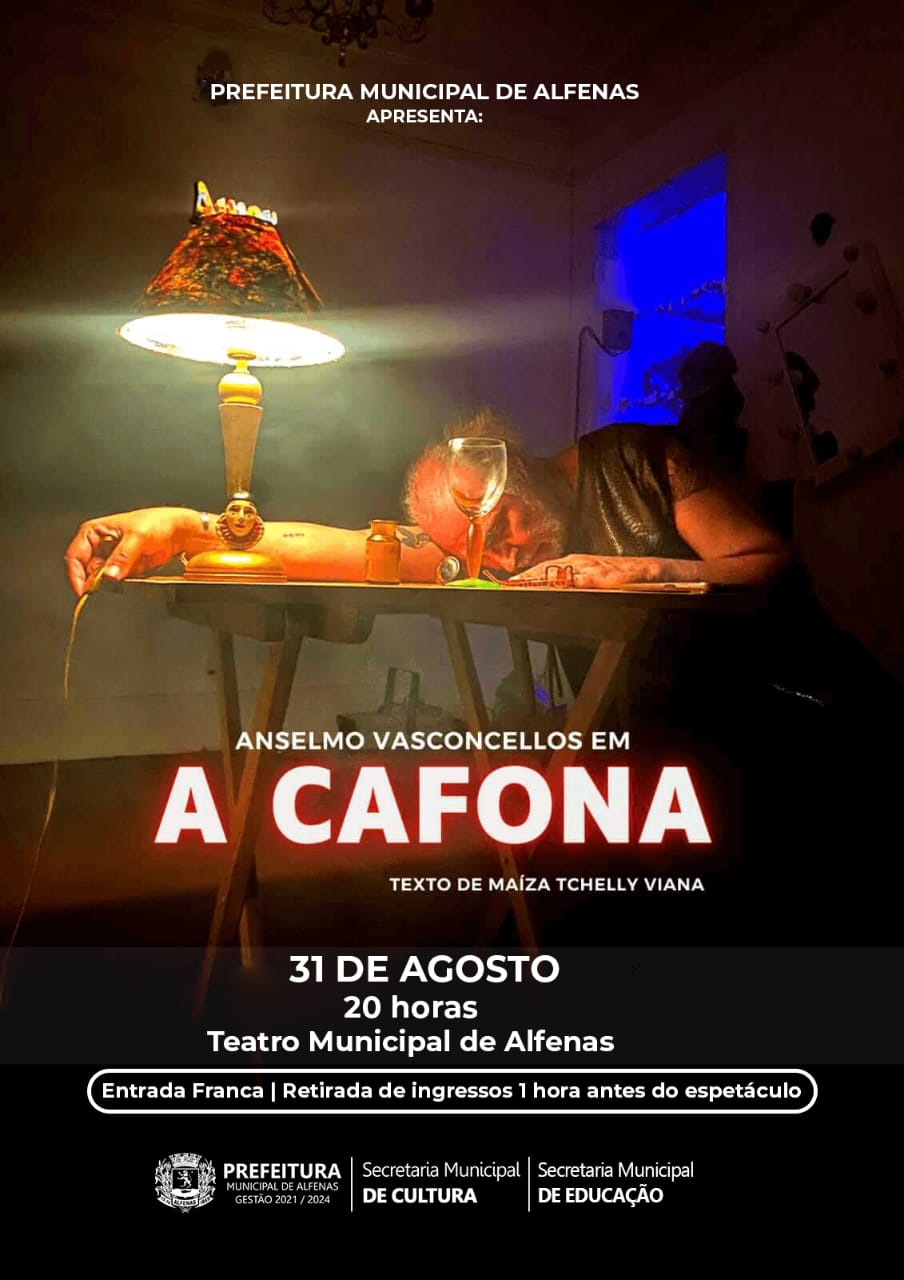 O espetáculo teatral “A Cafona”, com o ator Anselmo Vasconcellos, será apresentado em Alfenas na quinta-feira a partir das 20h. A peça será encenada, no Teatro Municipal, por iniciativa da Secretaria Municipal de Cultura e da Secretaria Municipal de Educação.