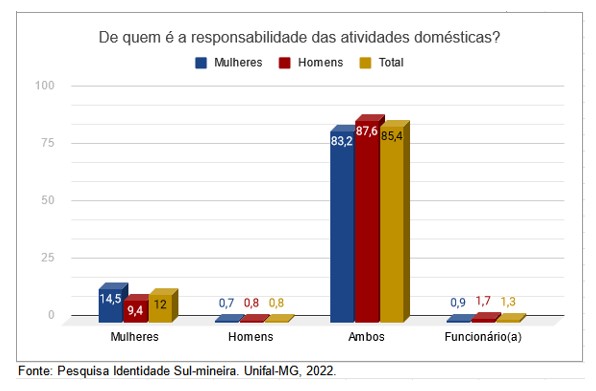 Os afazeres domésticos, como organização da casa, limpeza dos cômodos, cozinhar, enfim, tudo o que diz respeito aos cuidados do local de moradias, para a grande maioria dos homens e mulheres do Sul de Minas Gerais deve ser realizado por ambos. É o que mostra uma pesquisa divulgada pelo projeto de extensão “A Imaginação Sociológica e o Sul de Minas”, do curso de Ciências Sociais da Unifal (Universidade Federal de Alfenas).
