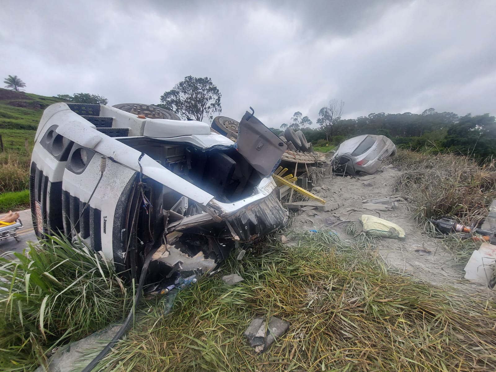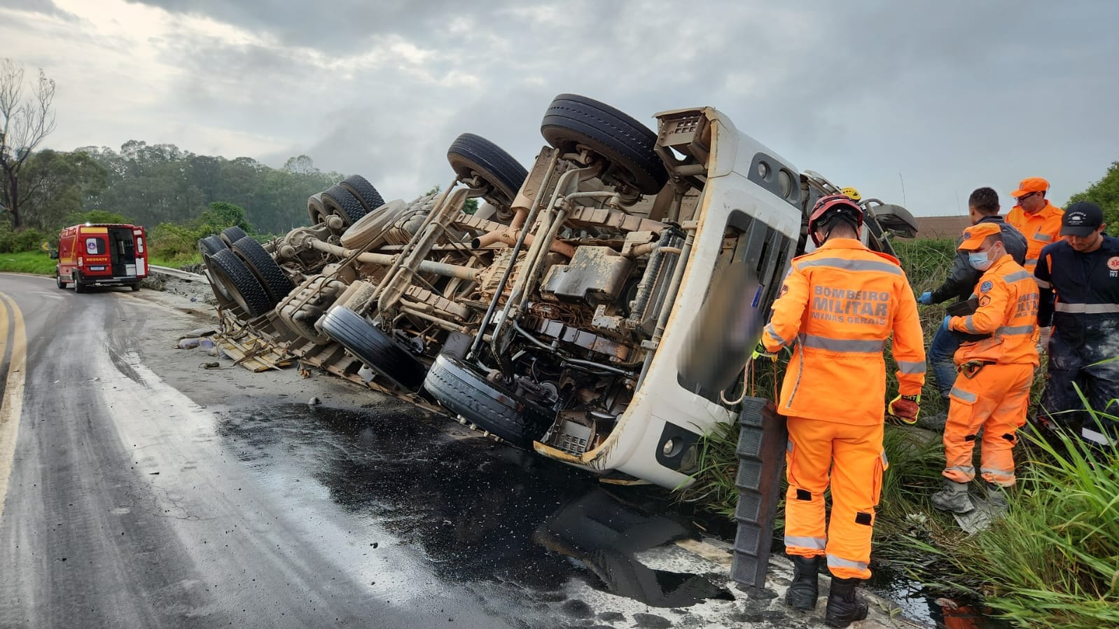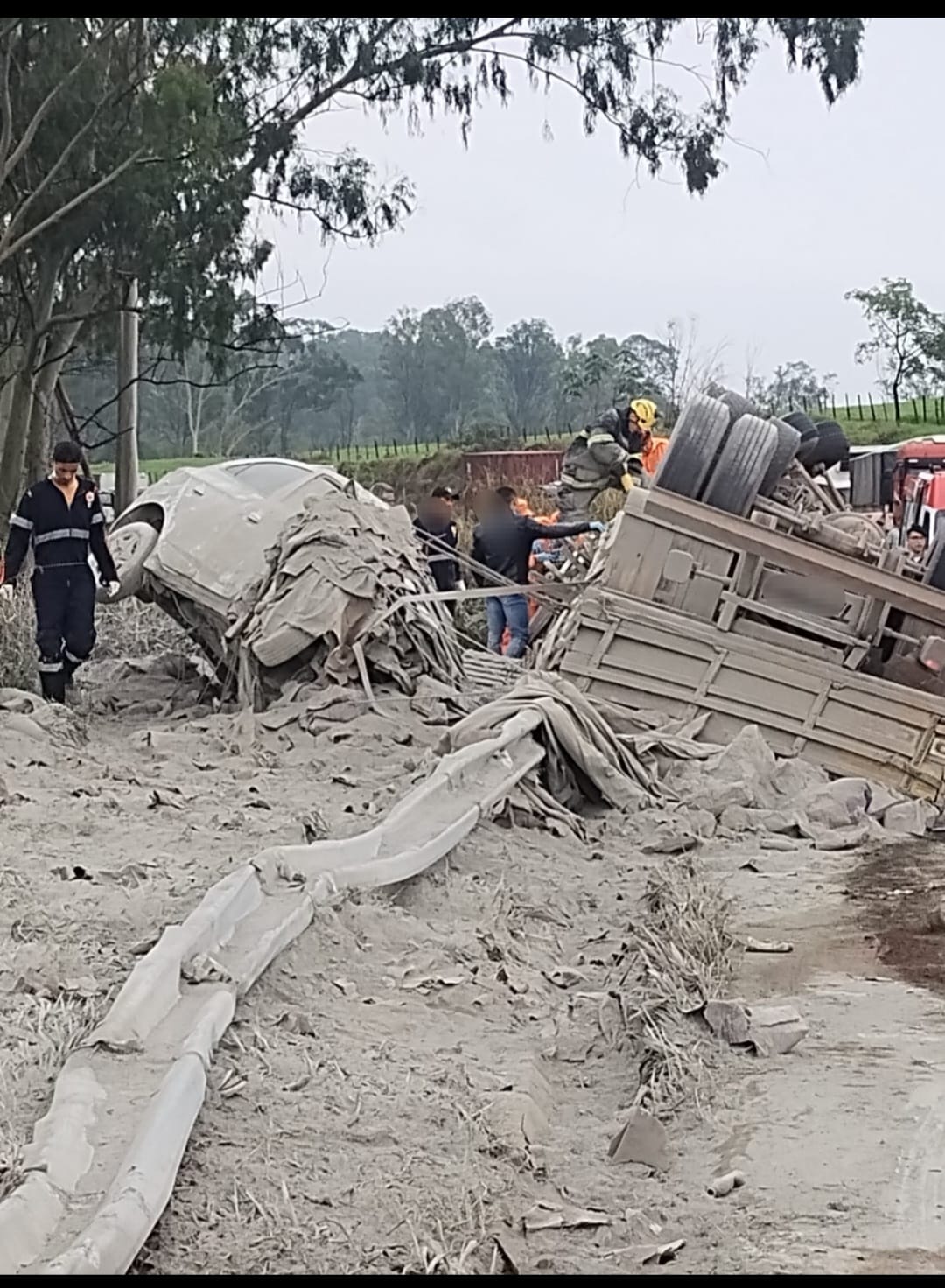 Um grave acidente foi registrado na manhã desta segunda-feira na MGC 369, que liga Alfenas a Campos Gerais. Um caminhão carregado com cimento tombou em uma curva, colidindo com um automóvel GM Onix que trafegava no sentido oposto.