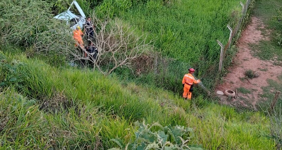 O veículo caiu em uma ribanceira de cerca de 6 metros de altura.