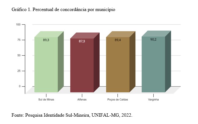 Os dados analisados são da Pesquisa Identidade Sul-mineira, realizada pela Unifal, que entrevistou 1320 moradores em 20 municípios do Sul de Minas entre os dias 14 de maio e 11 de junho de 2022. O Sul de Minas é entendido como um conjunto de 162 municípios que fazem parte das regiões intermediárias de Pouso Alegre e Varginha.
