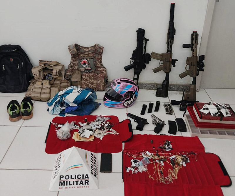 Os produtos roubados estavam escondidos embaixo da pia da cozinha. No imóvel, a PM também localizou o simulacro do revólver que teria sido utilizado no assalto, além de outros simulacros de arma de fogo.
