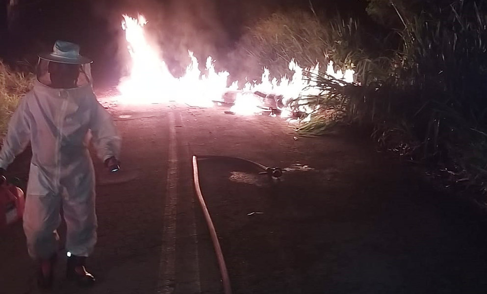 Os bombeiros precisaram fechar a via devido ao ataque das abelhas, fazendo uma sinalização do local. De acordo com a corporação, além do corte foi necessário queimar a árvore para evitar que as abelhas permanecessem no local. Somente após mais de três horas atuando na pista, os bombeiros conseguiram eliminar o risco, mantendo a rodovia segura. Abaixo, foto divulgada pelo Corpo de Bombeiros.