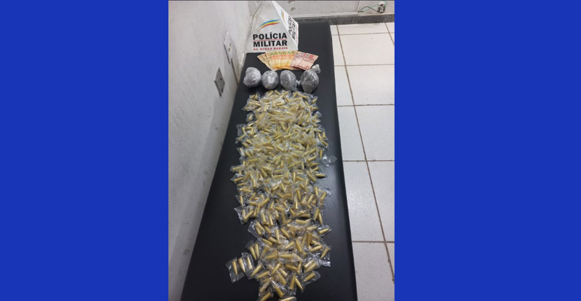 Com o homem, a PM encontrou uma bucha de maconha e um aparelho celular. Em seu apartamento, os policiais localizaram em um dos cômodos da residência drogas e uma quantia em dinheiro. Foram apreendidas 456 cápsulas de cocaína, 200 buchas de maconha, um aparelho celular e R$ 300 em espécie. O suspeito já foi preso por envolvimento com o tráfico ilícito de drogas em outras ocorrências. Abaixo, foto divulgada pela PM.