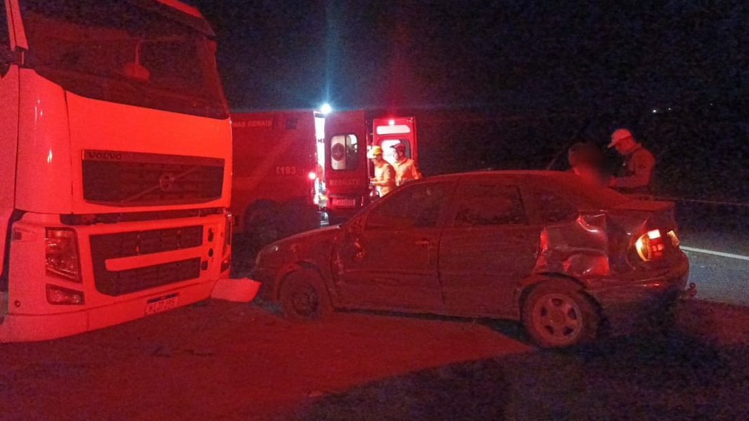 Um motorista perdeu o controle do veículo e bateu em uma carreta, estacionada no acostamento da MGC-491. O acidente foi próximo ao trevo de Alfenas.
