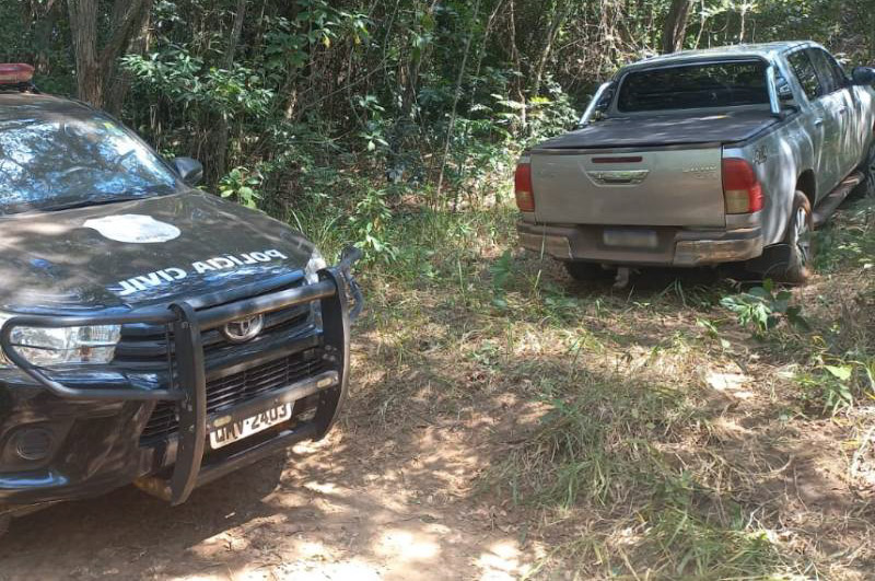Os policiais civis encontraram a caminhonete em uma mata.