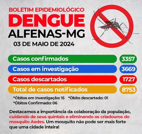 Seis mortes confirmadas e outras 15 em investigação, além 3.357 casos confirmados de dengue. Esse é o balanço divulgado, na última sexta-feira, pela Secretaria de Saúde de Alfenas.