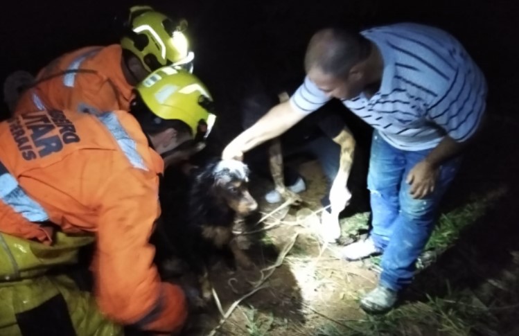 O Corpo de Bombeiros realizou o resgate bem-sucedido de um cachorro que havia caído em um poço desativado no bairro Ponte Preta, em Machado. O animal, que escapou de sua residência, ficou preso em uma profundidade de 5 metros. O resgate foi na noite da última sexta-feira.