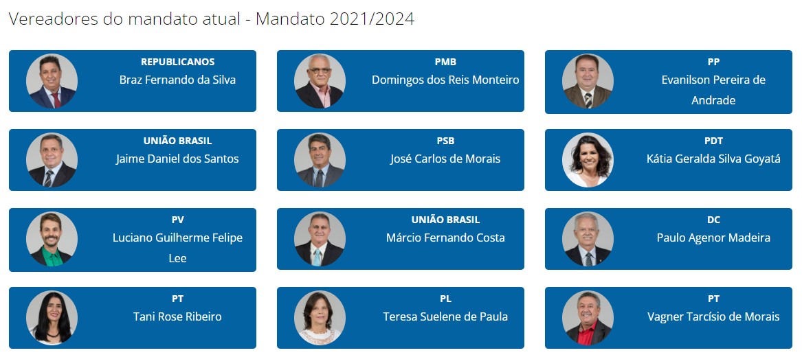 O vereador Paulo Agenor Madeira (Paulinho do Asfalto/DC) é o mais experiente na Câmara Municipal, com seis mandatos. Os três últimos mandatos foram em 2001/2004, 2013/2016 e o atual (desde 2020). Os anteriores não estão disponíveis no site DivulgaCand, do TSE.