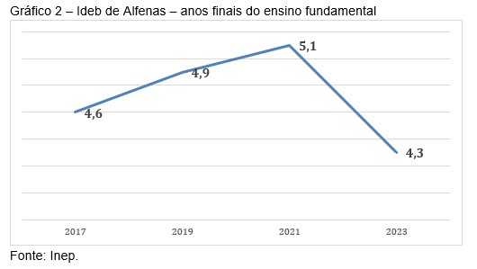 Entre as escolas públicas de Alfenas houve uma queda significativa no Ideb dos anos finais do ensino fundamental (6º ao 9º ano), entre 2019 e 2023. As escolas estaduais de Alfenas foram duramente afetadas, com três delas sendo encontradas entre as dez piores da região sul de Minas Gerais. Os dados foram analisados pelo projeto de extensão “A Imaginação Sociológica e o Sul de Minas”, do curso de Ciências Sociais da Unifal (Universidade Federal de Alfenas).